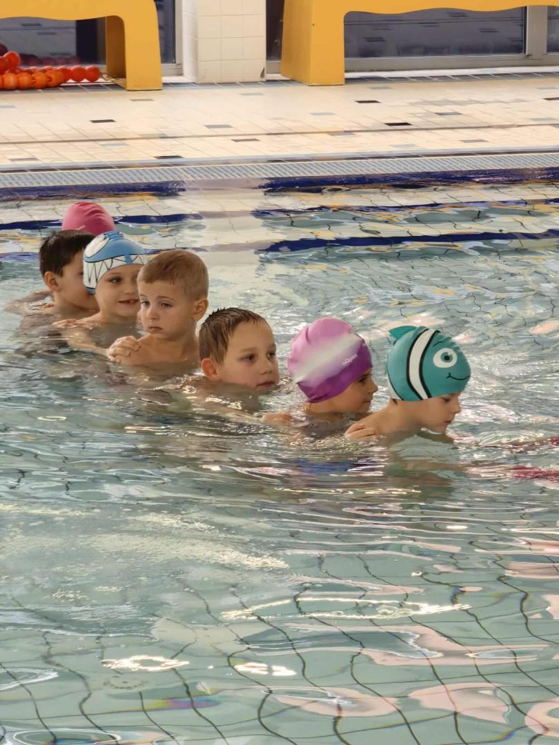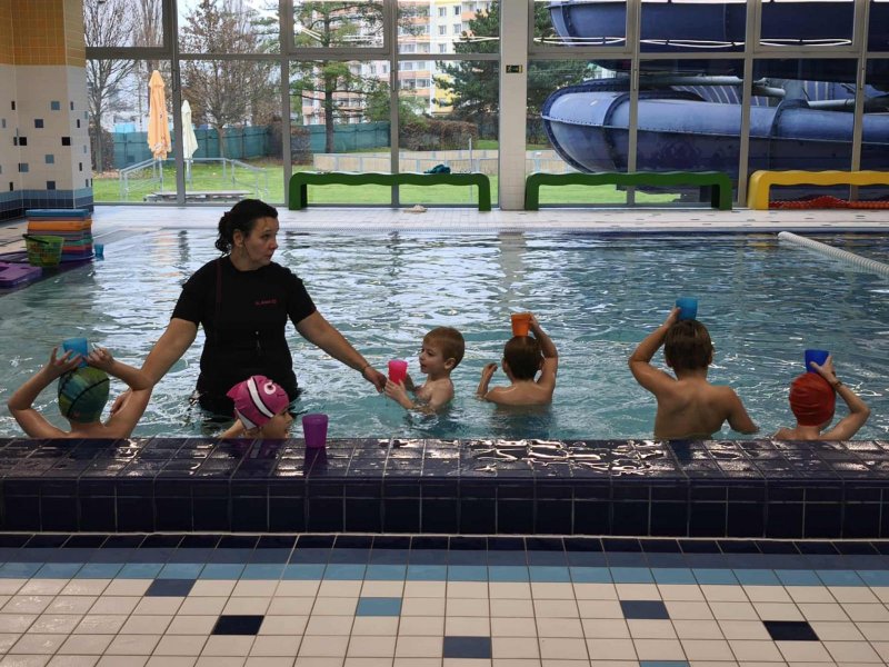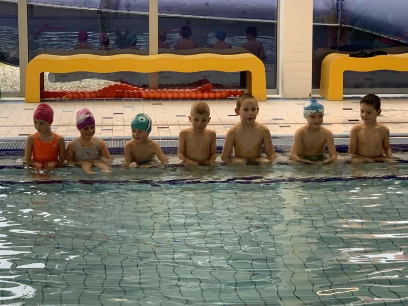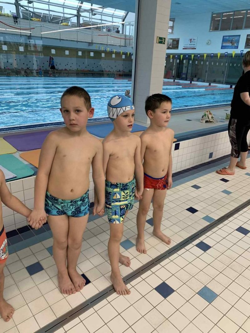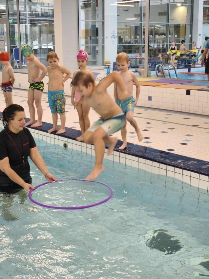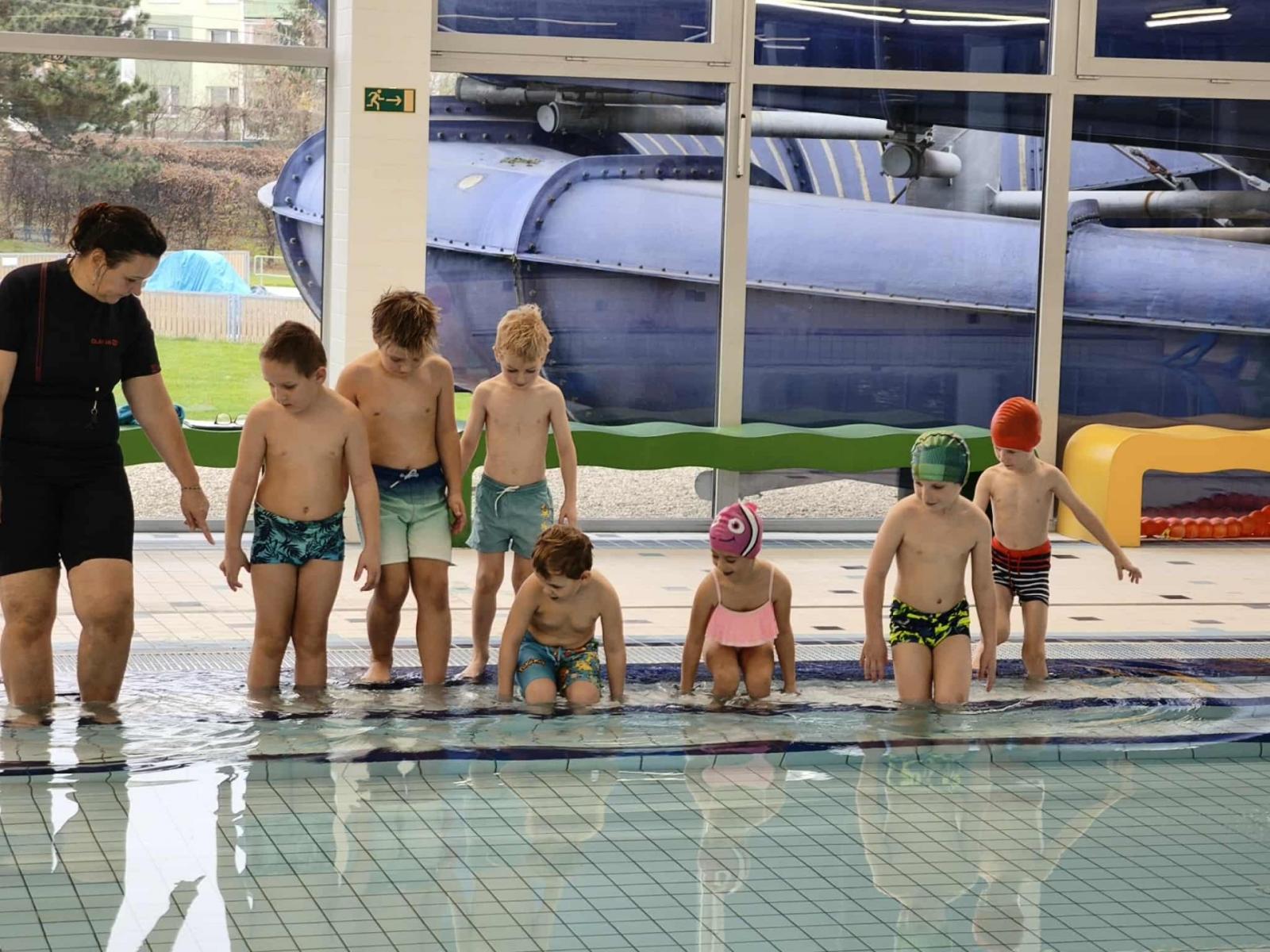 Děti si 1. plavání moc užily, byly šikovné a všechny zvládly vodu v obličeji a skok.