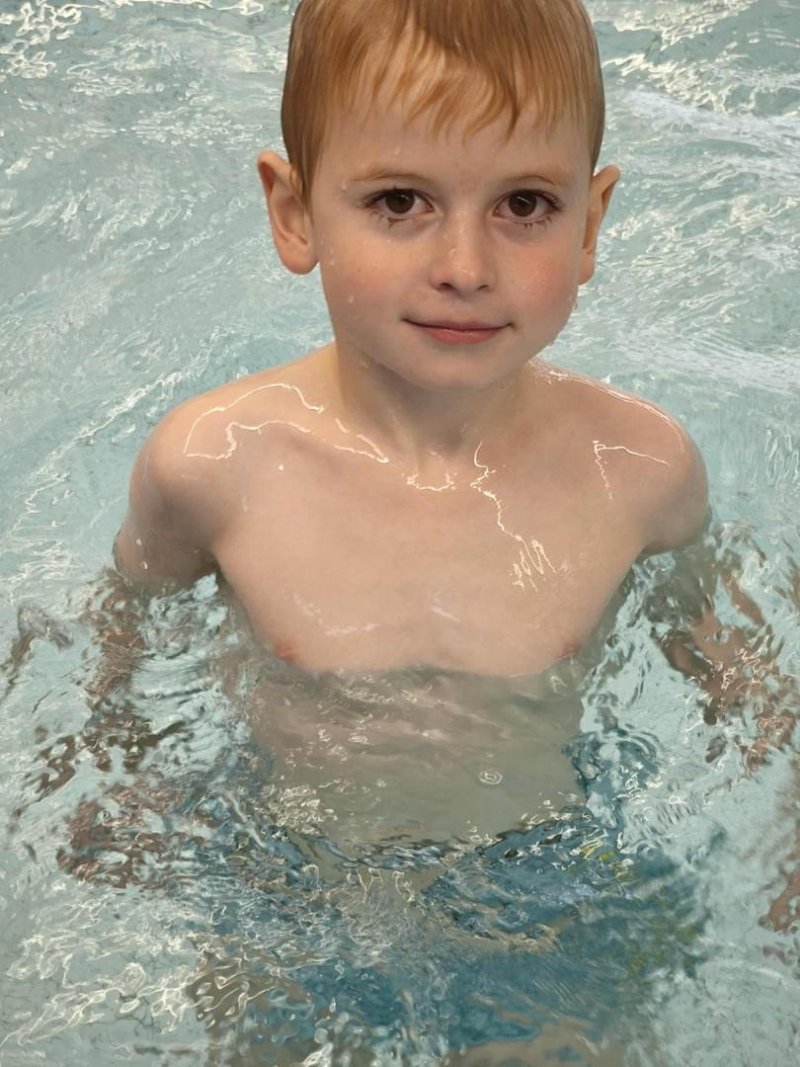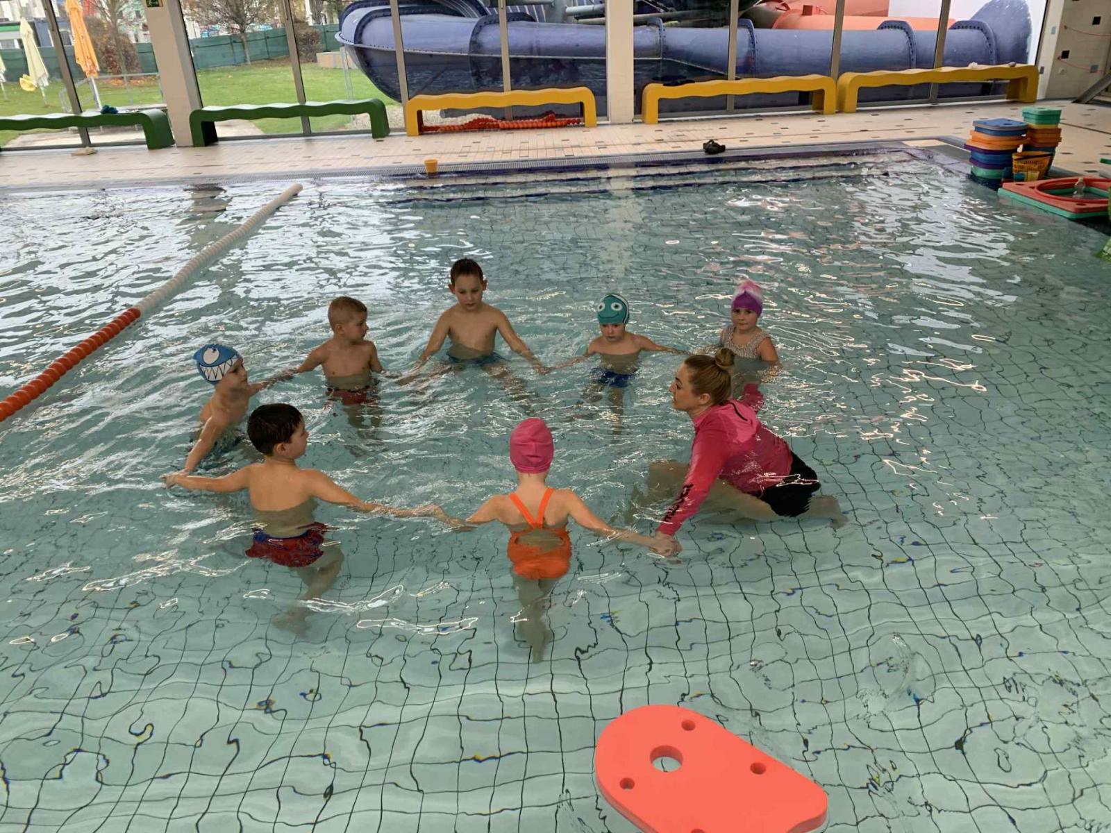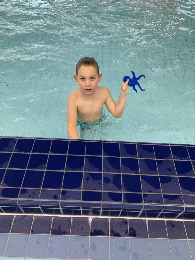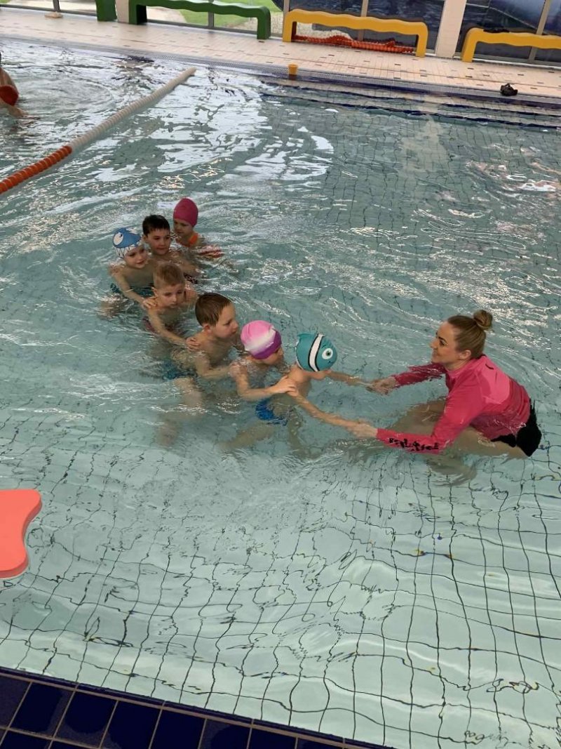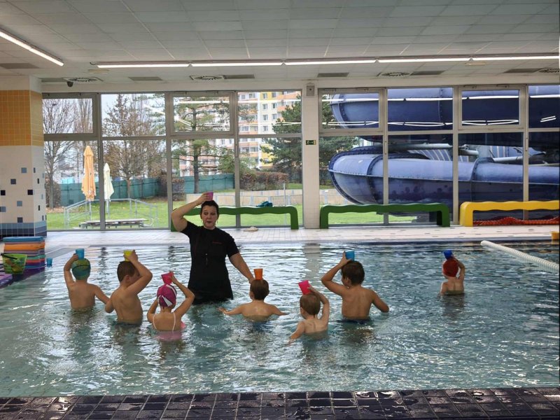 Děti si 1. plavání moc užily, byly šikovné a všechny zvládly vodu v obličeji a skok.
