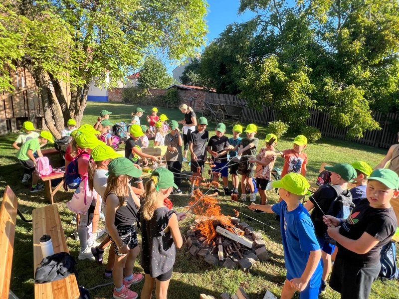 Ve čtvrtek 4. 9. jsme se spolu s 3. A vydali do Domu Strmenských v Kudlovicích a na hřiště do Sušic.