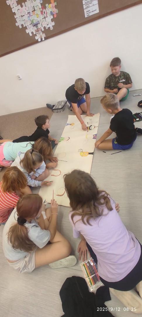 Své zážitky z pádlování jsme zaznamenali v pátek 12.9. v rámci adaptačního dne a pak jsme vyrazili vzhůru nad školu ke společným hrátkám...