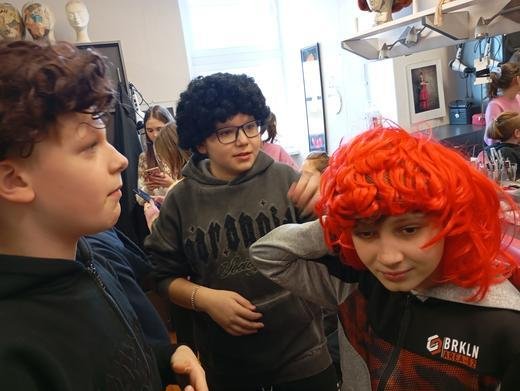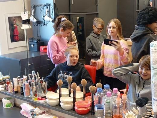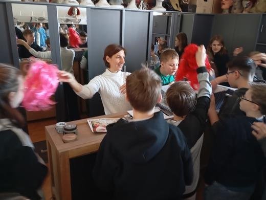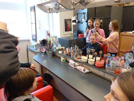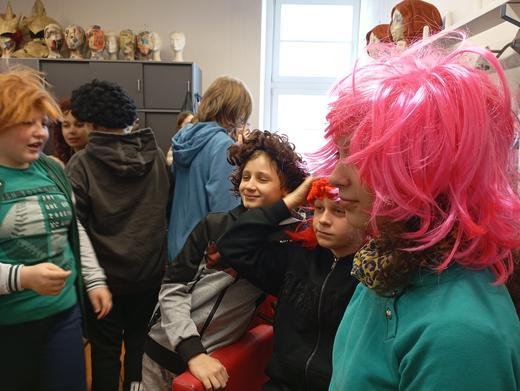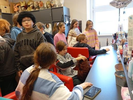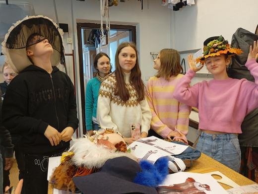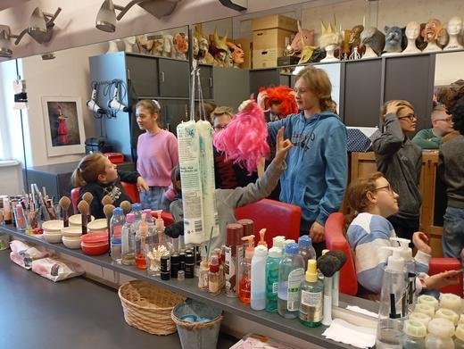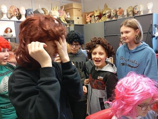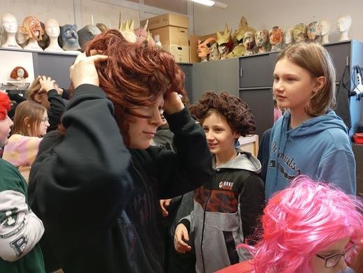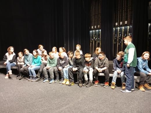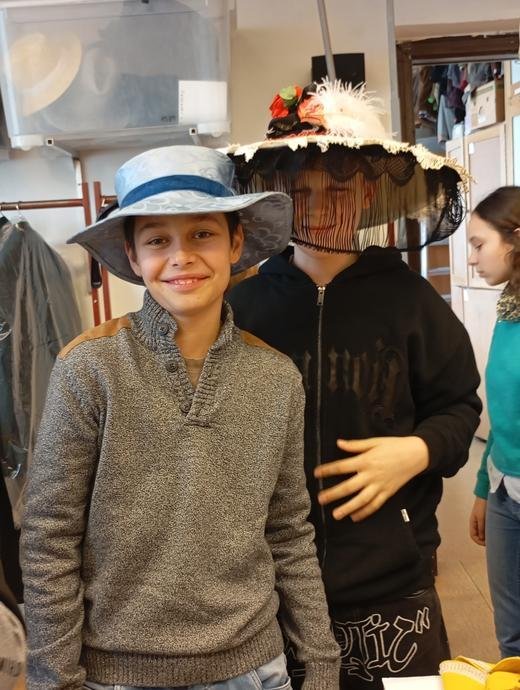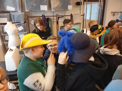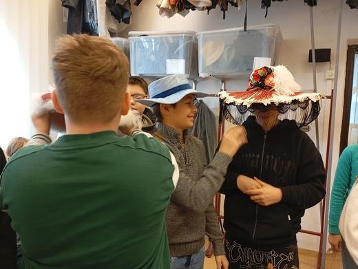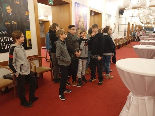 V pondělí vyrazili naši šesťáci na exkurzi do Slováckého divadla. Paní průvodkyně nás zavedla z foyer do kostymérny, kde jsme se seznámili s procesem výroby kostýmů od prvních návrhů až po jejich vyhotovení. Vyzkoušeli jsme si nejrůznější pokrývky hlavy. Nakoukli jsme do místností, kde se kostýmy perou a připravují pro další reprízu. Každé dívčí srdce zaplesalo při návštěvě „nejsmradlavější“ místnosti v budově – skladu obuvi. Vyzkoušeli jsme si paruky, prohlédli si šatny a stoupli na prkna, která znamenají svět. Už víme, kde se na jevišti schovává nápověda, kudy herci mizí ze scény, že v Hradišti je otočné pódium a kdo je třeba rekvizitář.