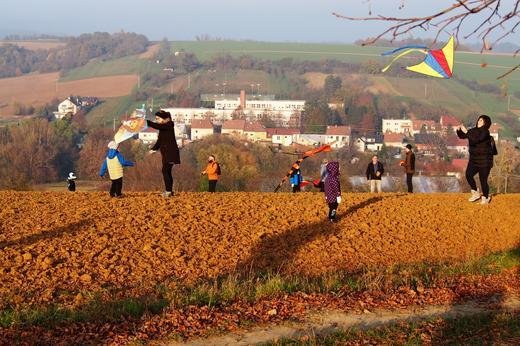 V neděli odpoledne se na kopci nad Traplicemi sešla spousta příznivců létání. A i když počasí bylo ideální na setkání u čaje, co se týkalo drakiády, moc nám nepřálo - vítr se ani nehnul. Přesto jsme toho při pokusech, jak dostat draka vzhůru, spoustu naběhali a nasmáli se. Kdo chtěl, měl možnost si nechat od šikovných deváťaček pomalovat obličej a všichni si kromě sladkostí odnesli i upomínkový list.