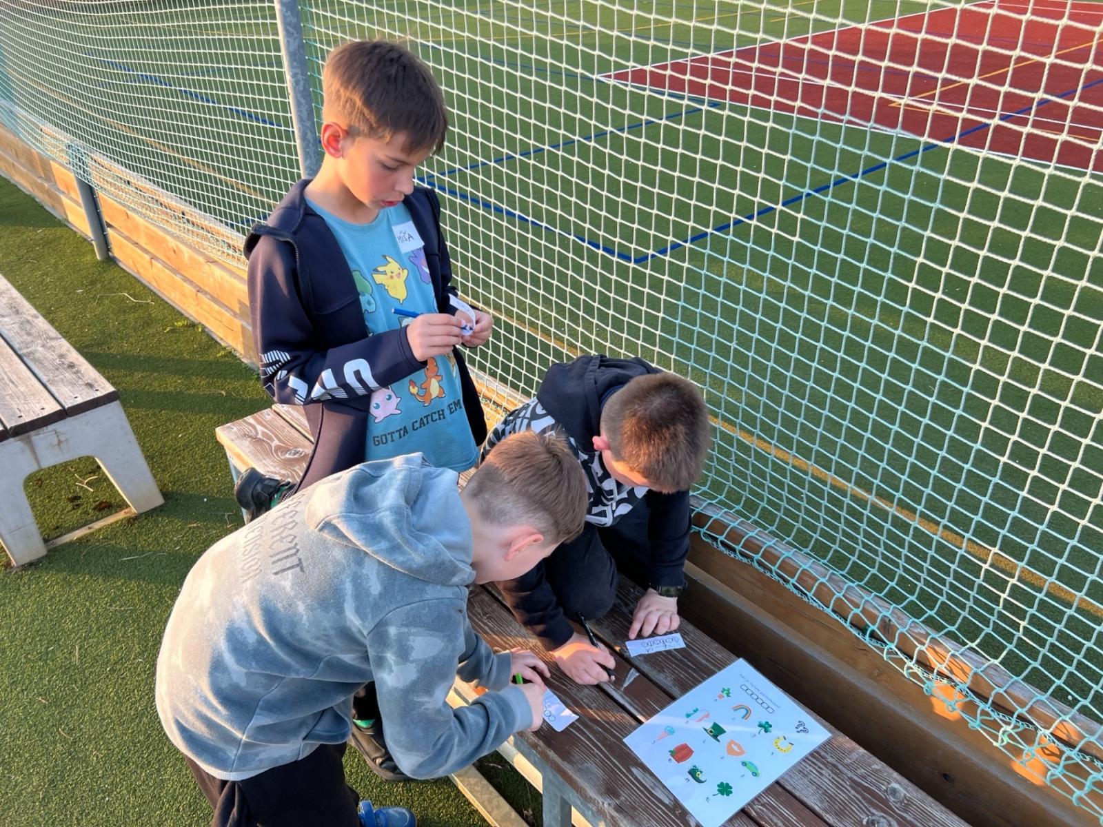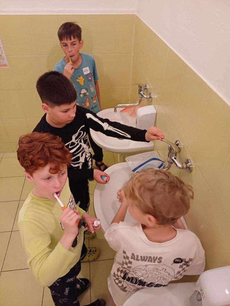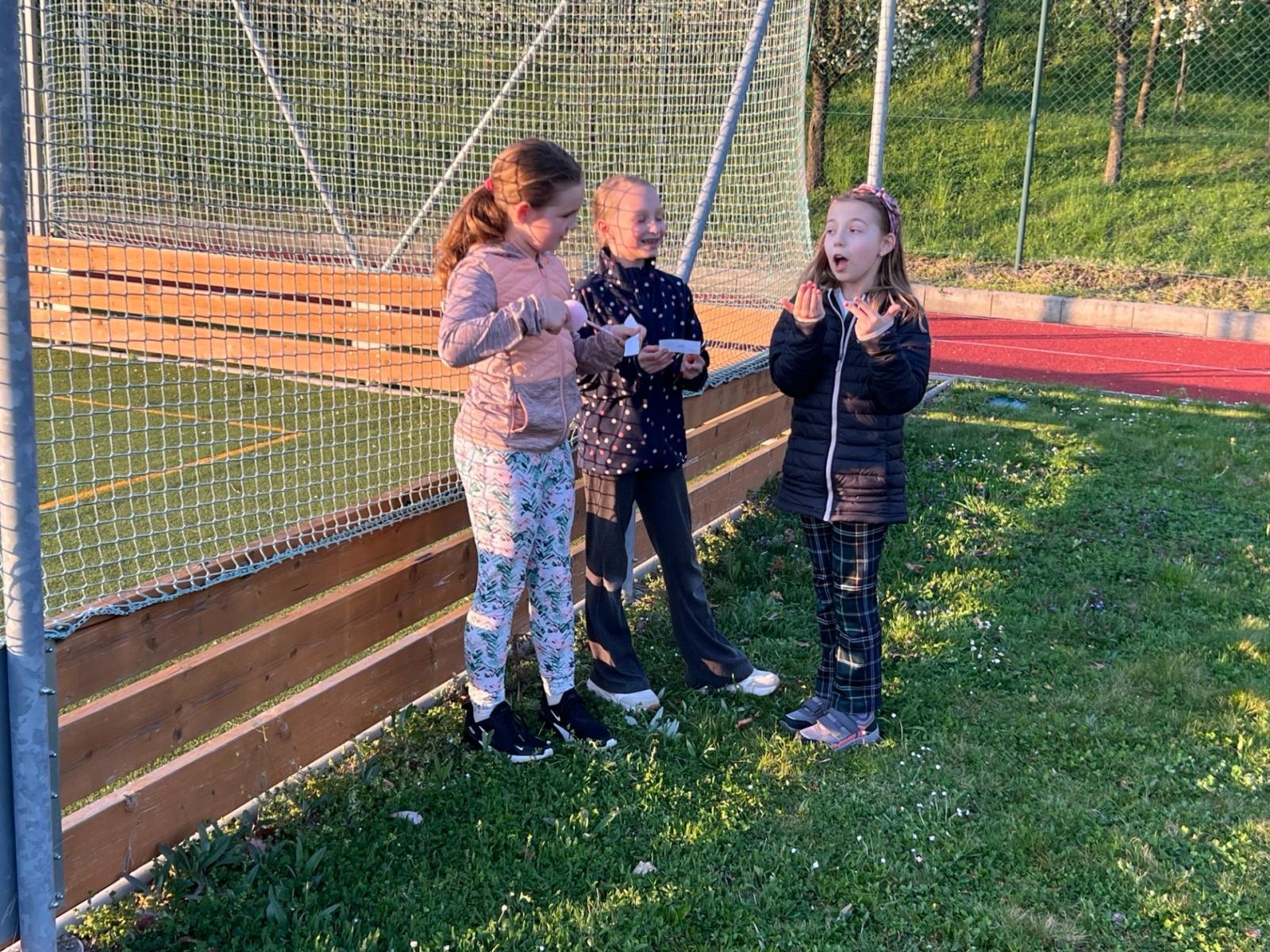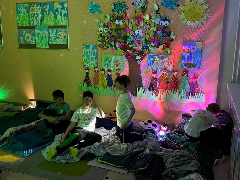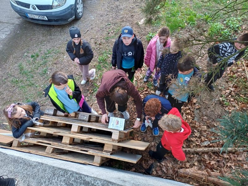 V dubnu na nás čekala odměna za půlroční plnění úkolů - spaní ve škole. Sešli jsme se v pátek navečer a vyrazili hledat poklad, který nám schoval skřítek neznámého jména. Po správném splnění všech úkolů jsme rozšifrovali jméno skřítka (Patrik) a to nám otevřelo dveře k hledání pokladu. Poklad byl schovaný velmi dobře, ale podařilo se nám jej najít. Potom jsme se pustili do výroby třídních triček, které nám budou připomínat tuto akci. Jakmile se setmělo a opravu nebylo vidět na špičku nosu, vydali jsme se s baterkami prozkoumat všechna zákoutí naší školy. Byl to pro nás takový "tajuplný" zážitek, škola v noci působila zcela jinak. Potom již následovala menší diskotéka, film a po vyčištění zoubků hůrá do svých pelíšků, které jsme si předtím pečlivě přichystali. Ráno jsme ještě stihli chvilku navštívit tělocvičnu a potom jsme se rozešli domů. Myslím, že na tuto noc nezapomeneme a budeme na ni s úsměvem na tváři vzpomínat. Bylo to skvělé :)