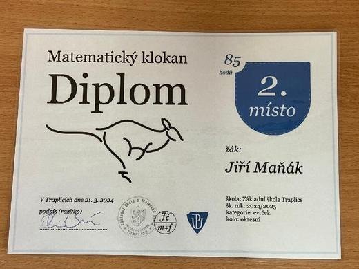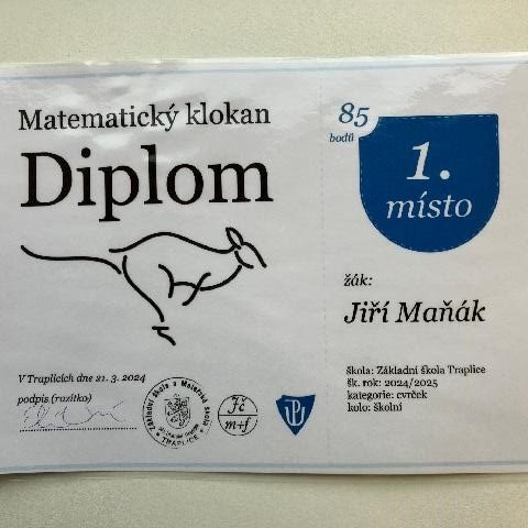Velkého úspěchu dosáhl Jirka Maňák, jelikož se se získanými 85 body umístil na opravdu skvělém druhém místě v okresním kole, do kterého se zapojilo 1 960 žáků.