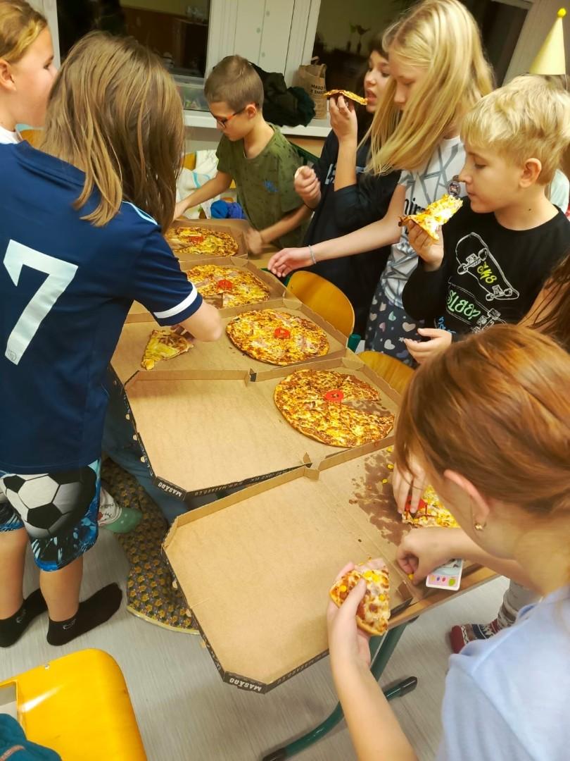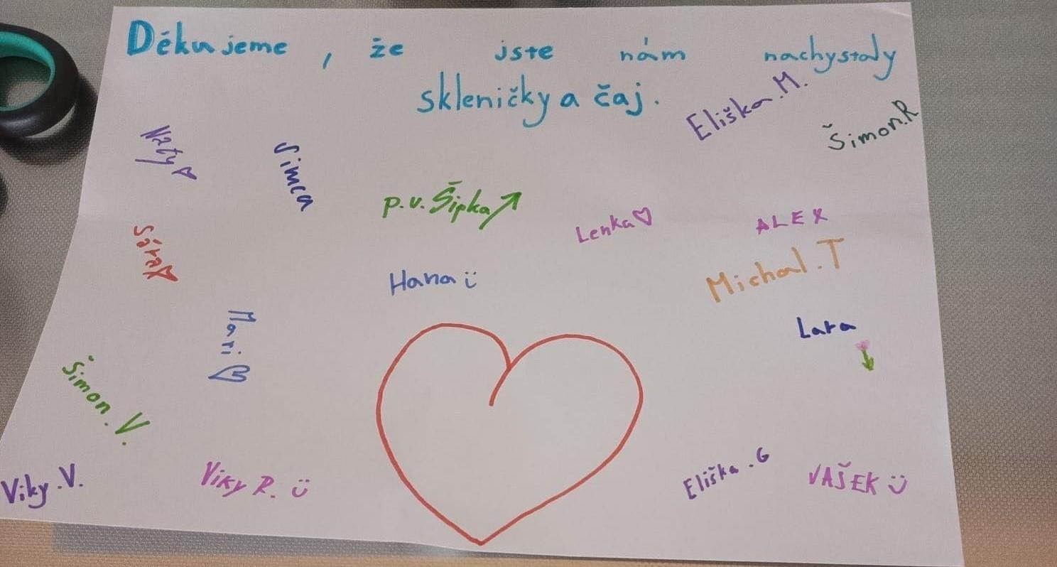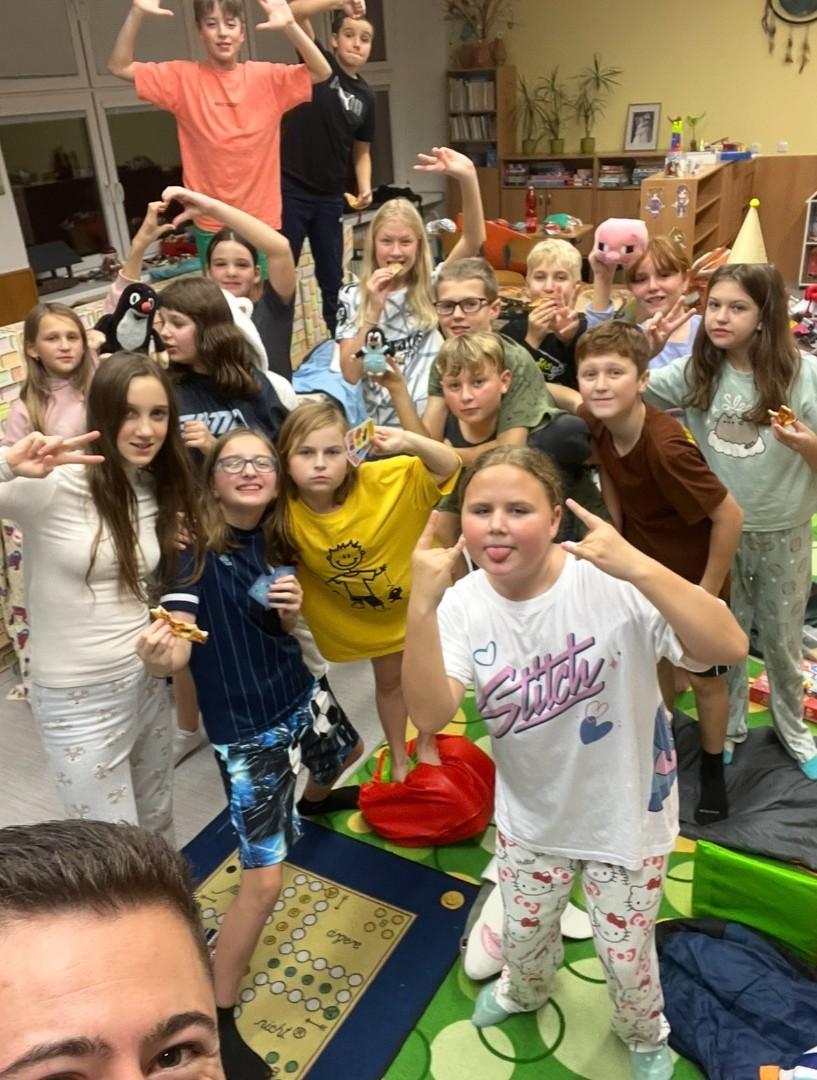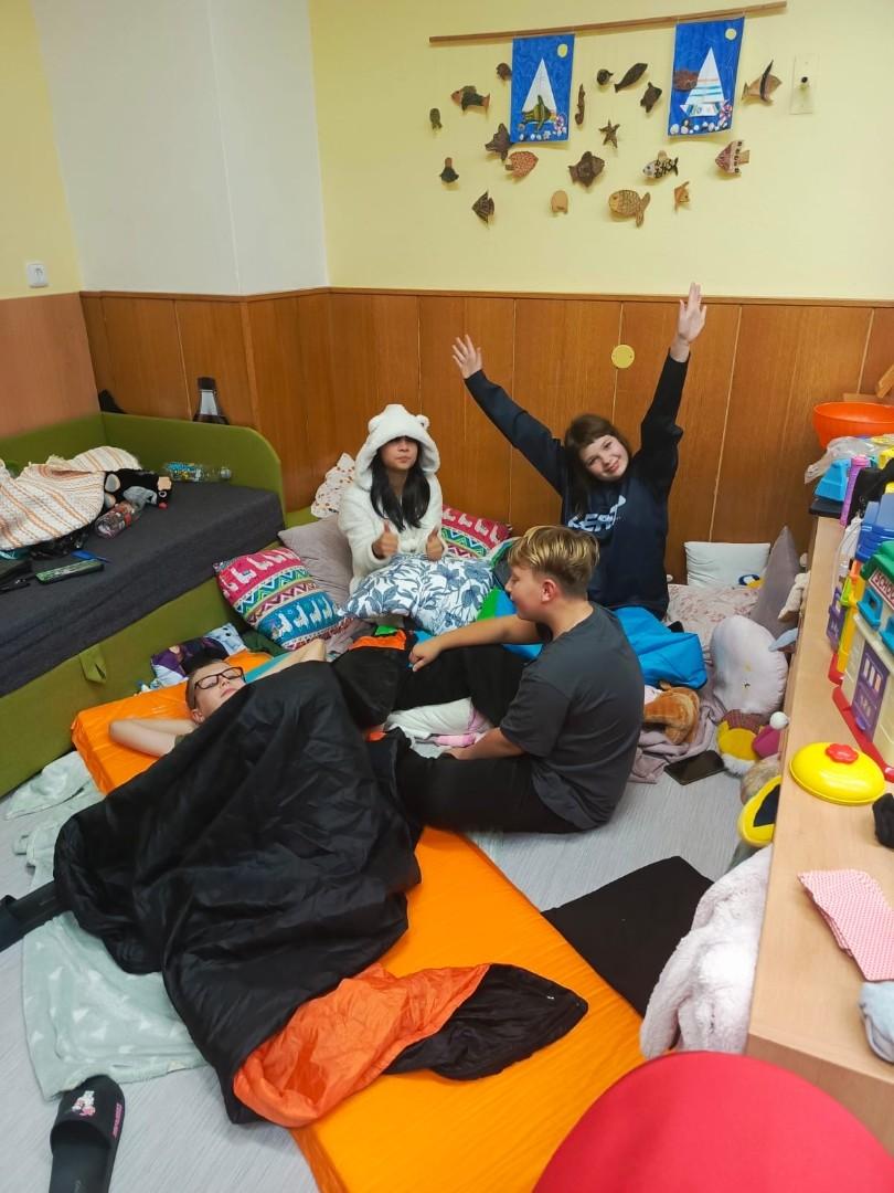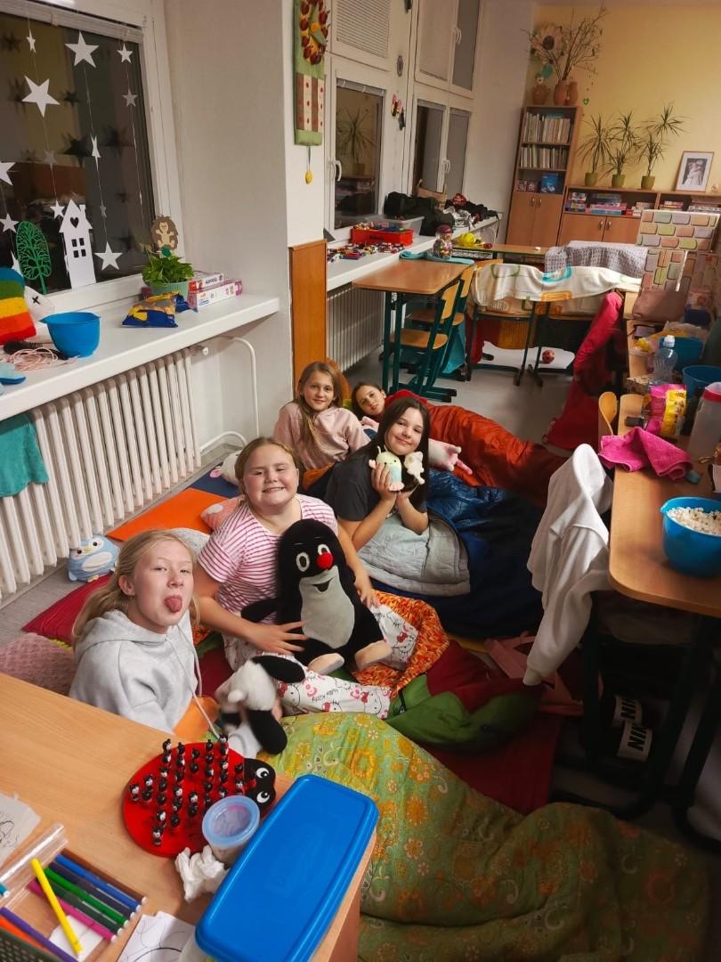 Hned zkraje nás čekala stezka odvahy, která prověřila statečnost každého z nás – a věřím, že na pana školníka Borůvku budeme vzpomínat ještě hodně dlouho. Nechyběla ani schovka po škole, ping - pong a spousta dalších her, které přinesly smích, napětí i pořádnou dávku energie. Večer jsme zakončili filmem s popcornem a samozřejmě nesměla chybět pizza.