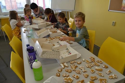 Dnešní dopoledne jsme pekli a zdobili perníčky. Prožili jsme s maminkami krásný předadventní čas. Děkujeme p. Přílučíkové za přípravu a všem za pomoc.