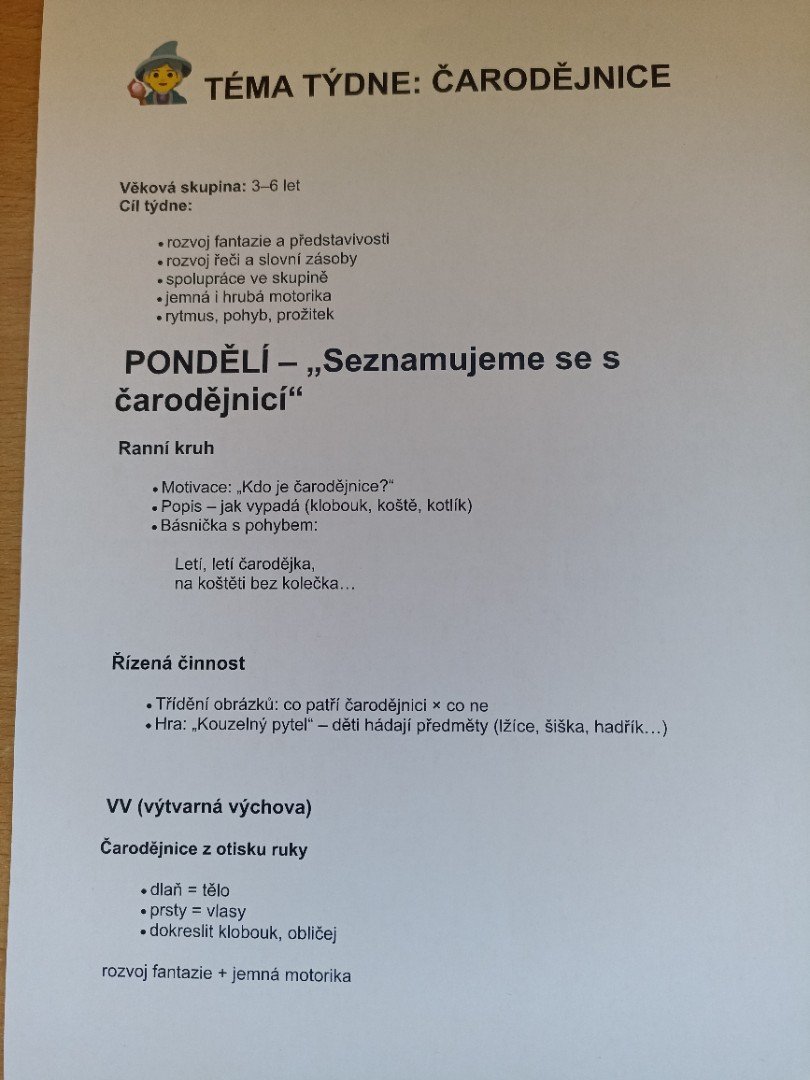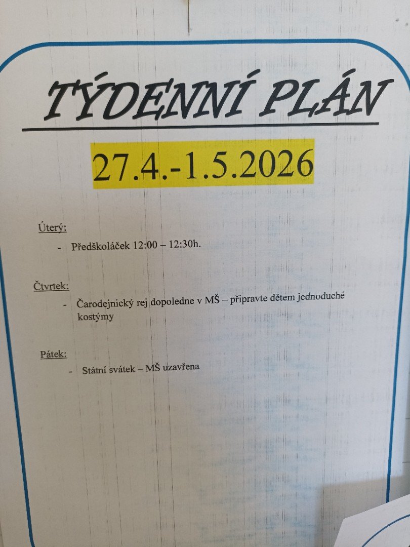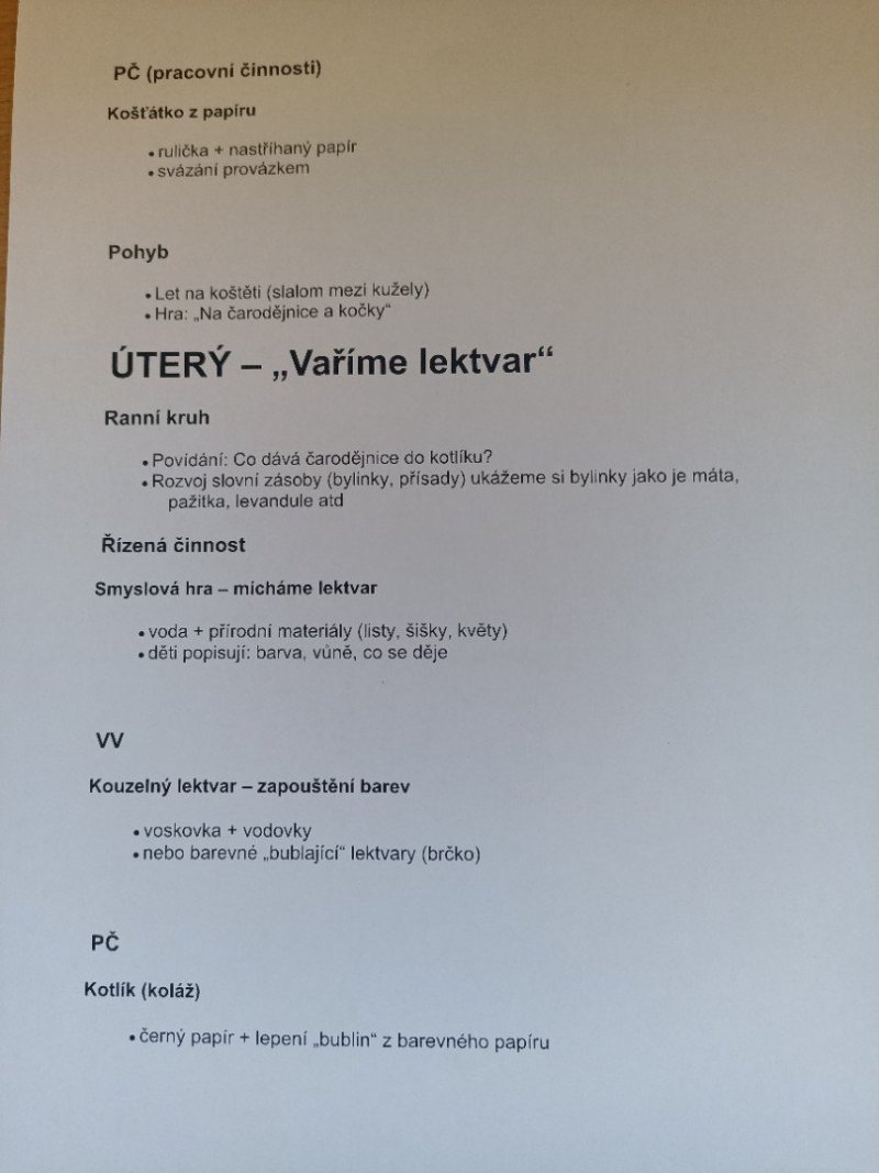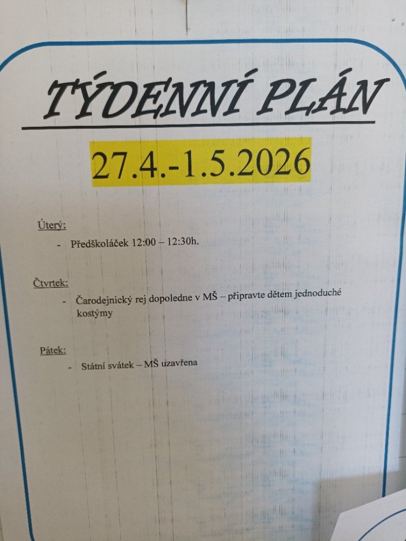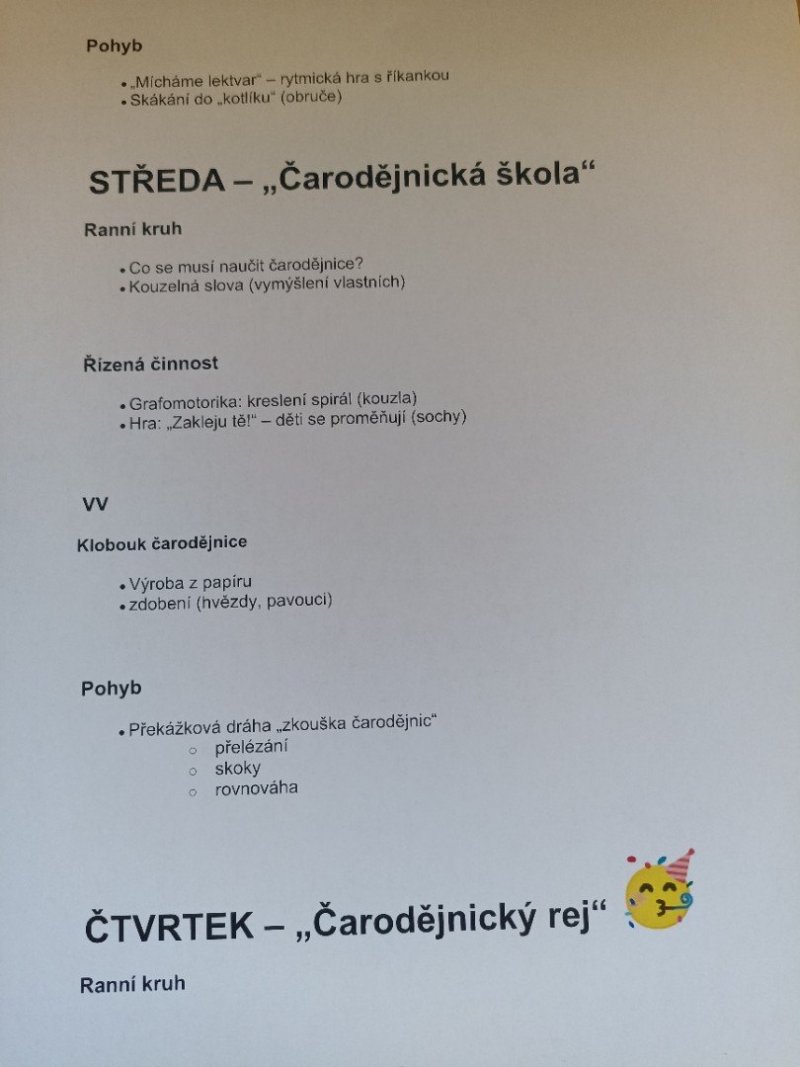 Plán týdne 27.-30.4. - Čarodějnice