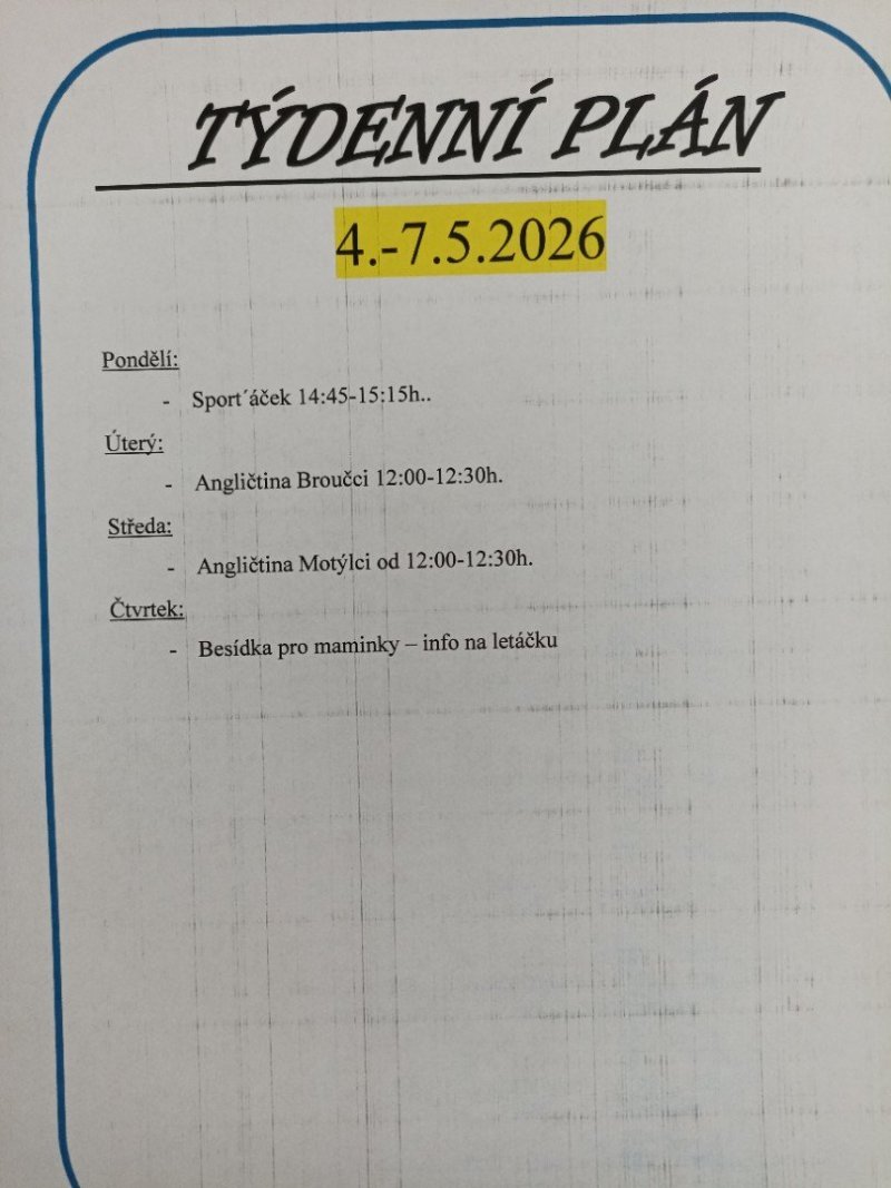 Plán týdne 4.-7.5. - Rodina (maminka má svátek)
