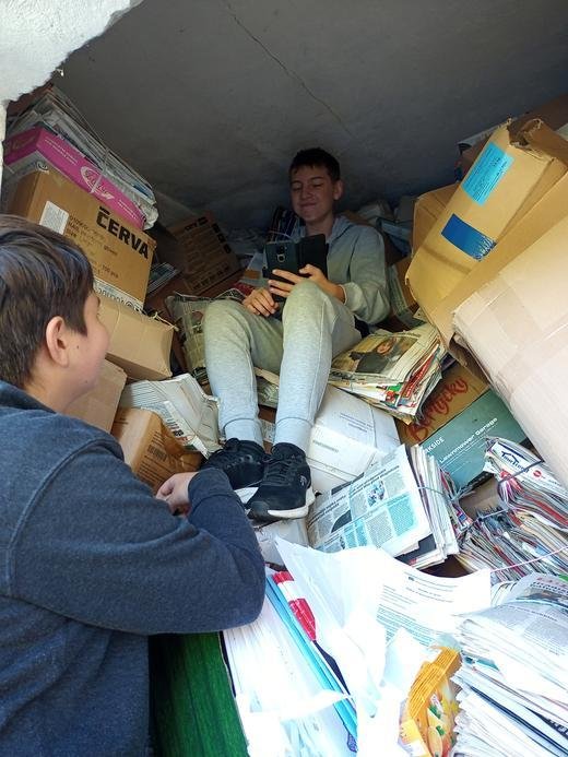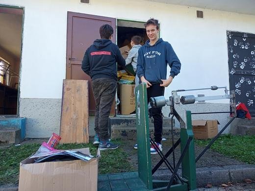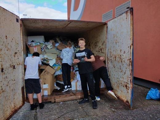 Tomáš Ondruch (9.třída) s 322kg papíru.
