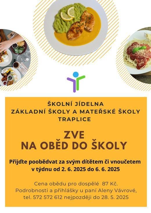 Školní jídelna Základní školy a Mateřské školy Traplice zve na oběd do školy.