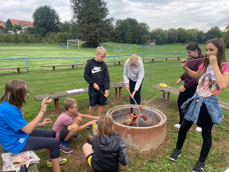 Dnes jsme prožili společně krásné adaptační dopoledne. Vyrazili jsme na místní fotbalové hřiště, kde jsme si zahráli několik zábavných her a nechybělo ani opékání špekáčků. Na závěr jsme se přesunuli do kuželny a vyzkoušeli si hru kuželek. I když to někteří hráli úplně poprvé, vedli si skvěle a věřím, že hra všechny bavila.