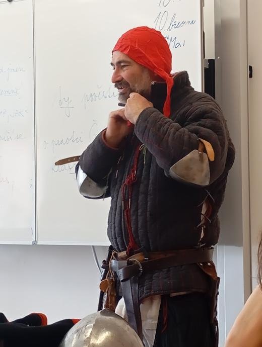 Pondělní hodinu dějepisu zpestřila sedmákům návštěva (skoro jako) ze středověku.
