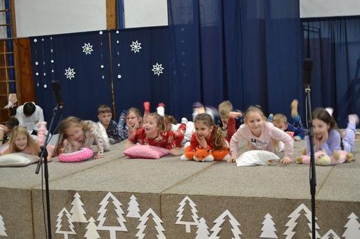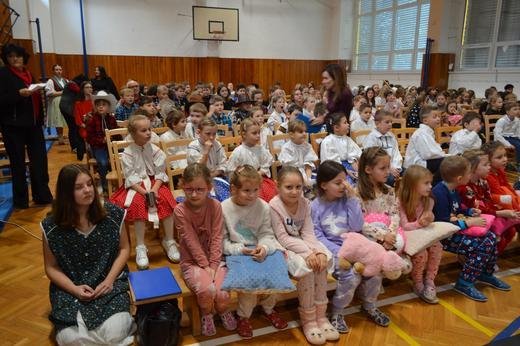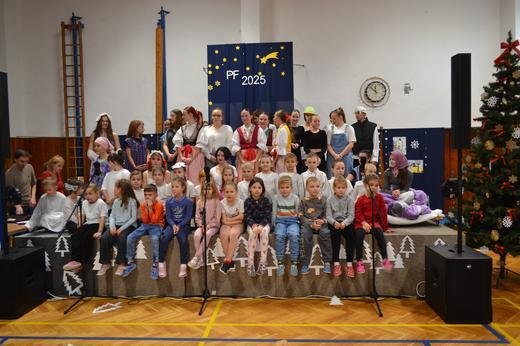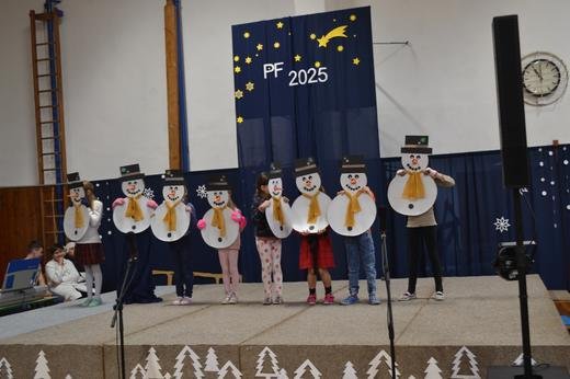 Na závěr se sluší poděkovat. Děkujeme všem, kteří se podíleli na přípravě vystoupení, ozvučení a světelných efektech. Děkujeme všem, kteří letos přispěli do opravdu bohaté tomboly. Díky si zaslouží i vedoucí družiny se svými pomocnicemi. Ta úžasná výzdoba na oknech, dveřích a oponě je jejich dílo. Do příprav se zapojili všichni pracovníci naší školy – od asistentek po Žákovou. Prostě od A po Ž.