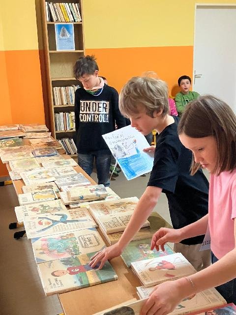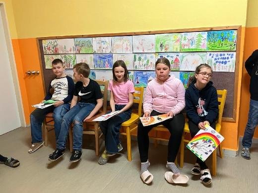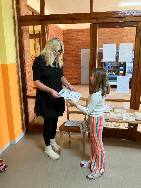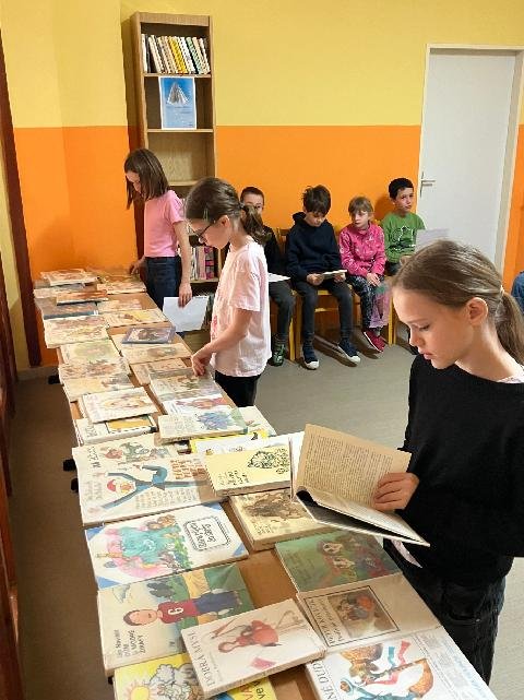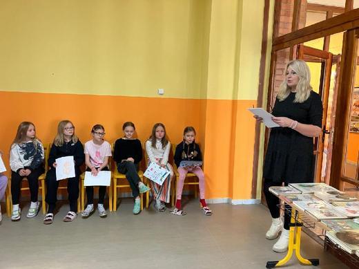 V pátek 4. 4. děti navštívily místní knihovnu, kde měly možnost za nakreslený obrázek získat knížku. A jelikož se třeťáci při kreslení moc snažili, všechny obrázky byly moc pěkné, vybrané knížky si opravdu všichni zasloužili.